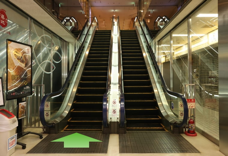 エスカレーターで2階に上がってください。