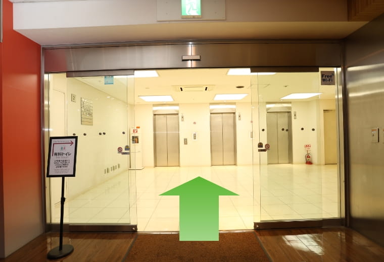 上がったら正面のエレベーターに向かってください。